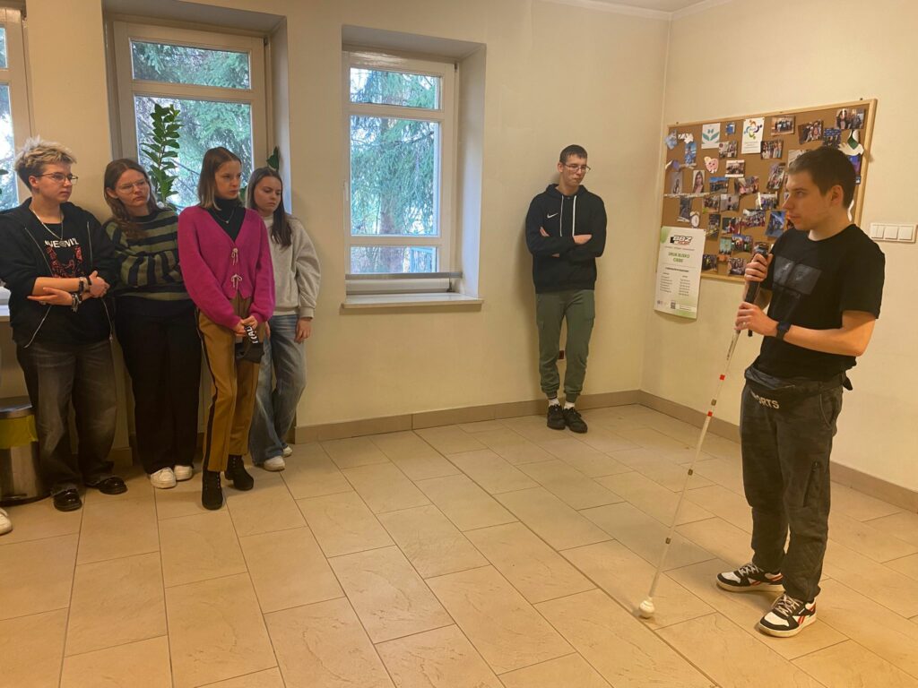 20 marca 2026 roku w Instytucie Zarządzania i Spraw Społecznych odbyły się warsztaty dla Studentów 1 roku pracy socjalnej. Spotkanie poświęcone było funkcjonowaniu osób z niepełnosprawnością sensoryczną, ze szczególnym uwzględnieniem osób słabowidzących i niewidomych.