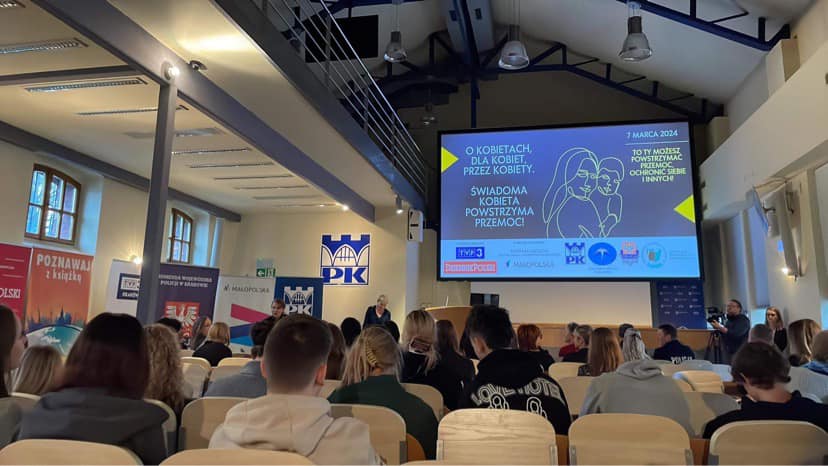 7 marca 2024 roku przedstawicielki naszego Koła Naukowego Animacji i Wolontariatu miały zaszczyt uczestniczyć w wyjątkowej konferencji “O kobietach, dla kobiet, przez kobiety. Świadoma kobieta powstrzyma przemoc!”, która odbywała się na Politechnice Krakowskiej.