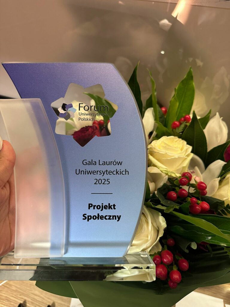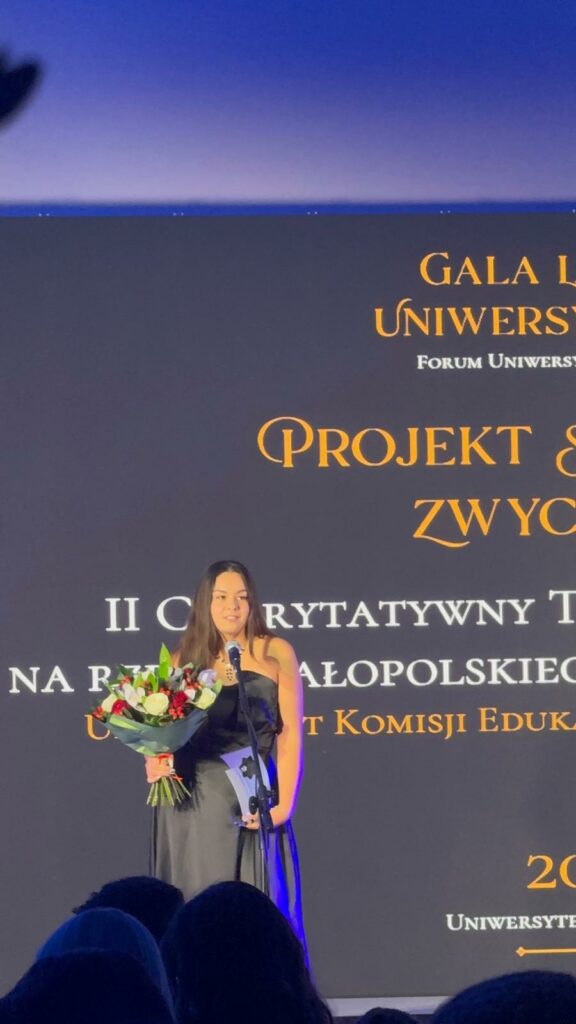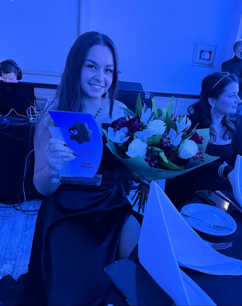 Gala Laurów Uniwersyteckich to jedno z najważniejszych wydarzeń roku akademickiego – miejsce, gdzie doceniane są inicjatywy wykraczające poza mury uczelni. Tym bardziej cieszy nas fakt, że to właśnie nasz projekt został dostrzeżony i nagrodzony, co stanowi ogromne wyróżnienie dla całego zespołu oraz wszystkich zaangażowanych w przygotowania.